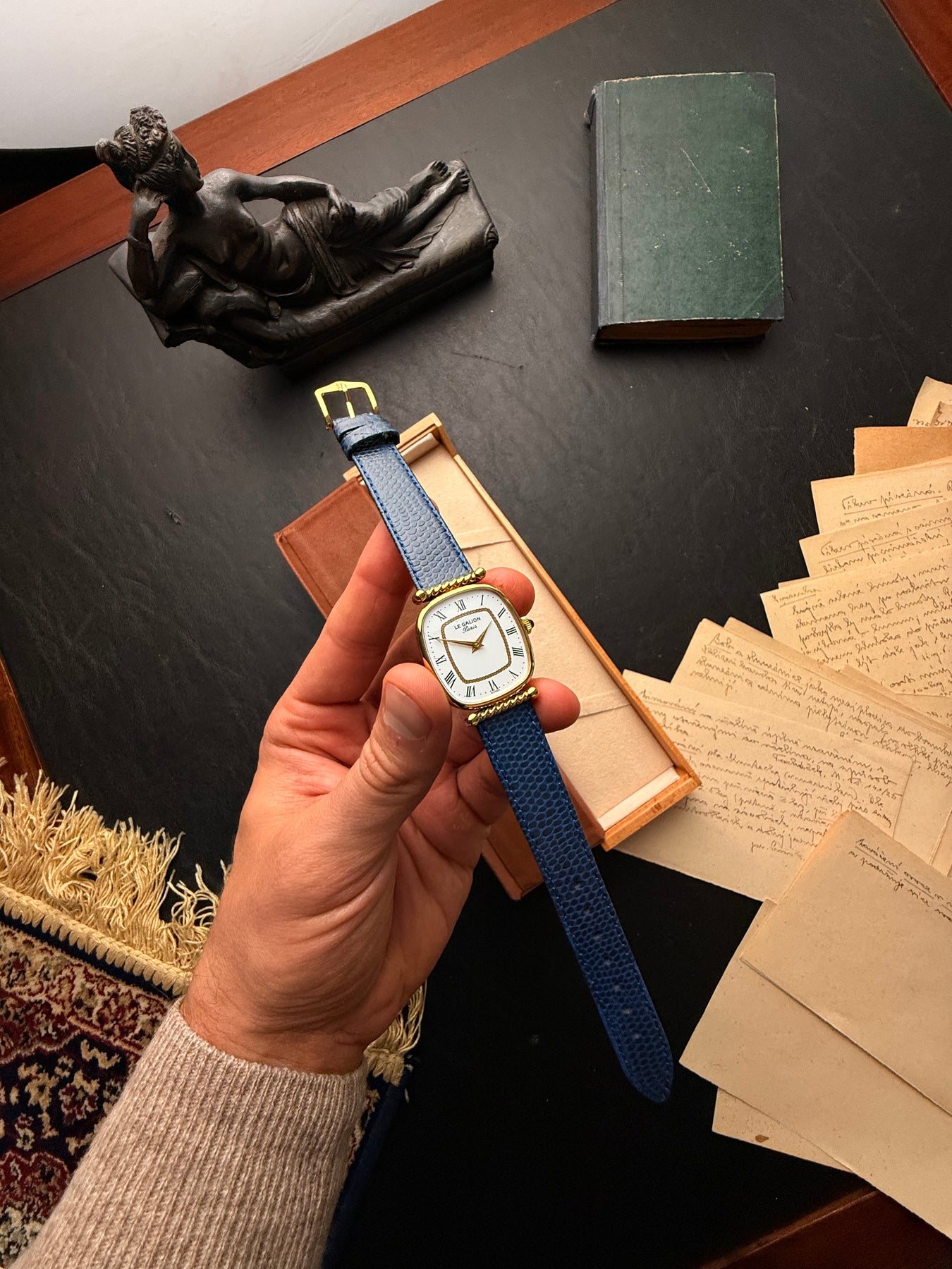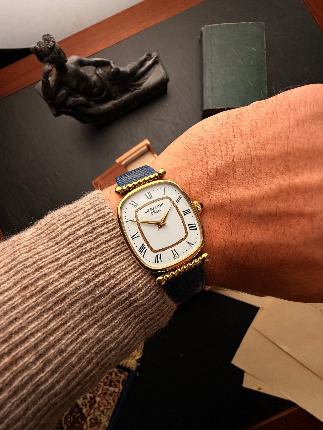 The Le Galion Paris "The Gilded Minimalist" is a rare example of French watchmaking that prioritizes clean, architectural lines. Housed in a significant 28 x 37 mm rectangular case, this "Jumbo Tank" offers a refined alternative to the more common round dress watches of the 1970s.