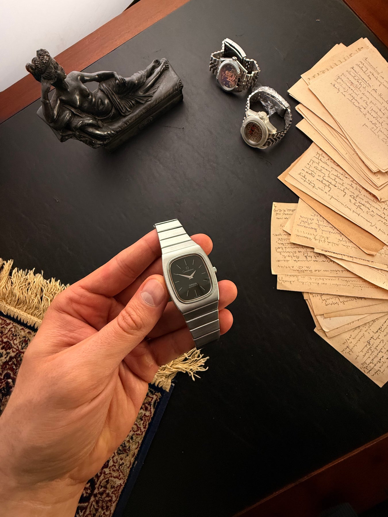 This Omega Constellation captures the essence of 1970s luxury design with its iconic "TV Screen" case. Designed during an era when watchmakers were experimenting with integrated bracelets and bold geometric shapes, this timepiece remains a symbol of retro-futuristic elegance.